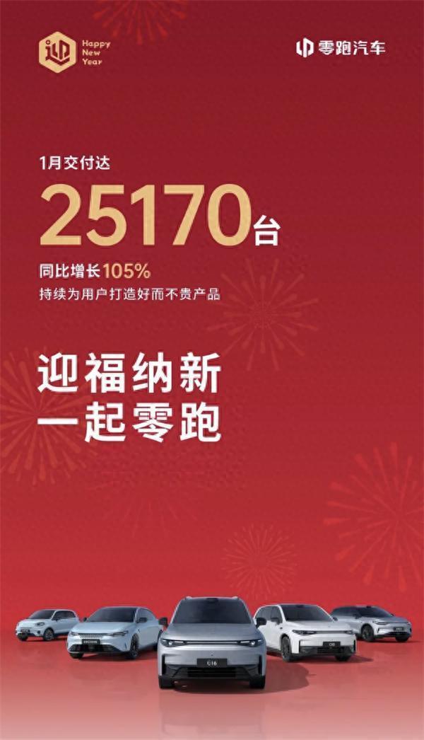 日前,零跑汽车公布其1月交付量达25,170台,同比增长105%。